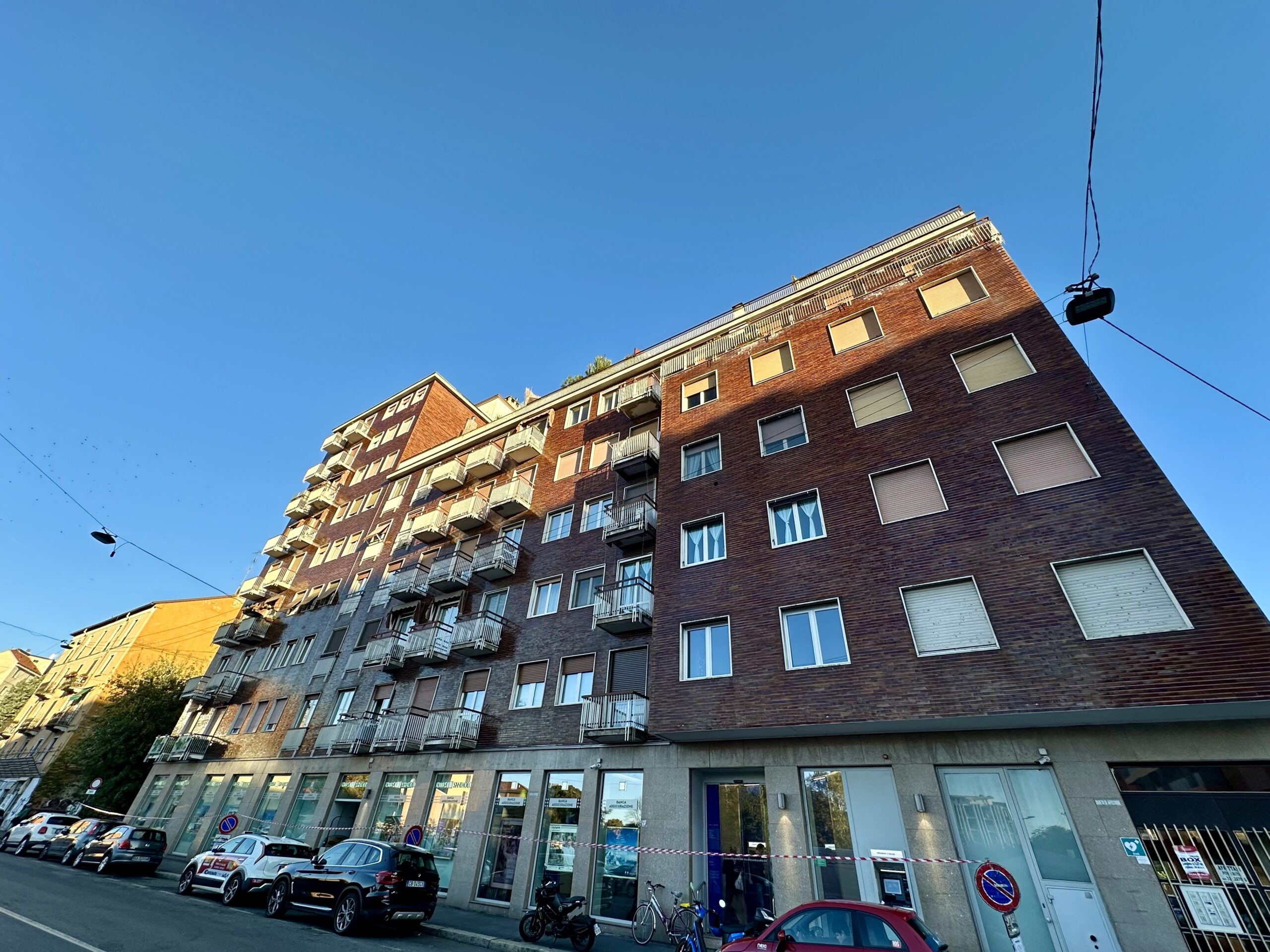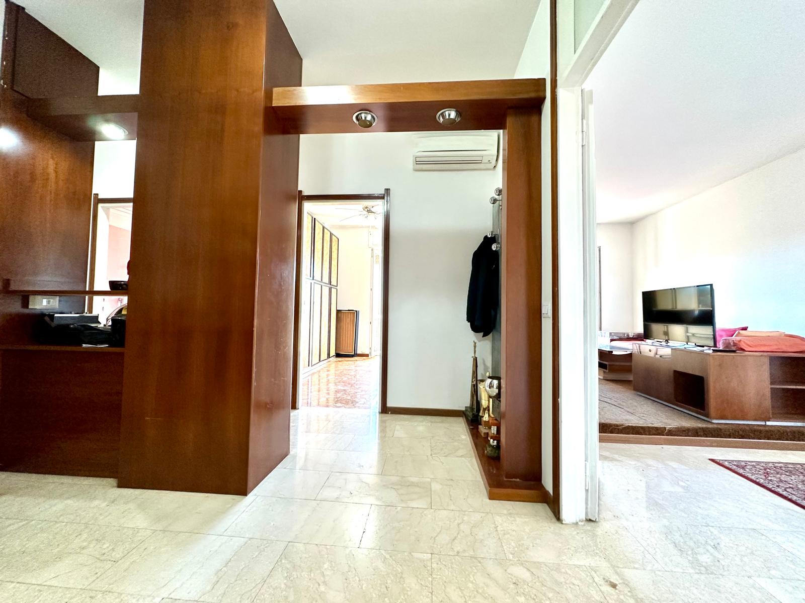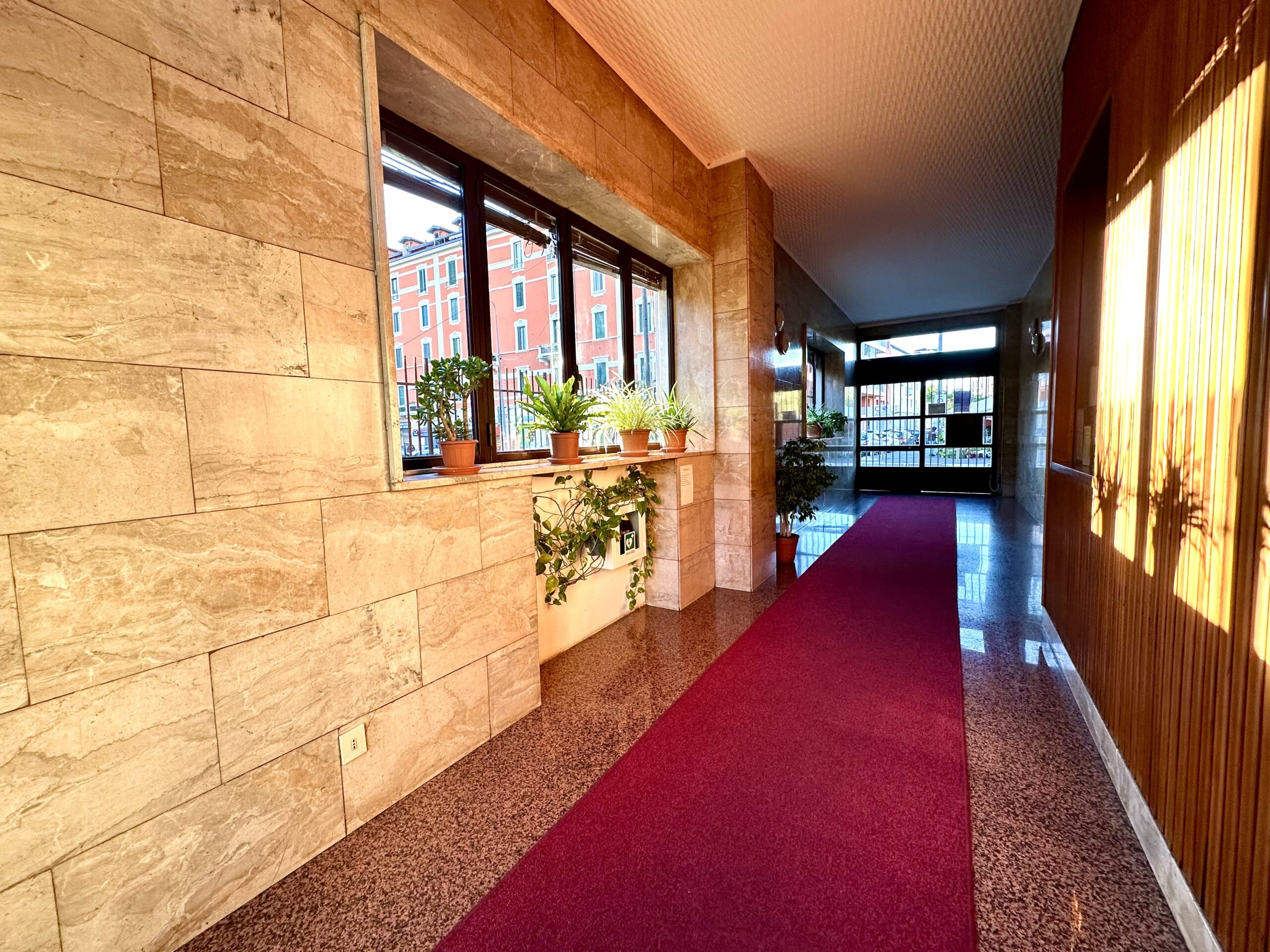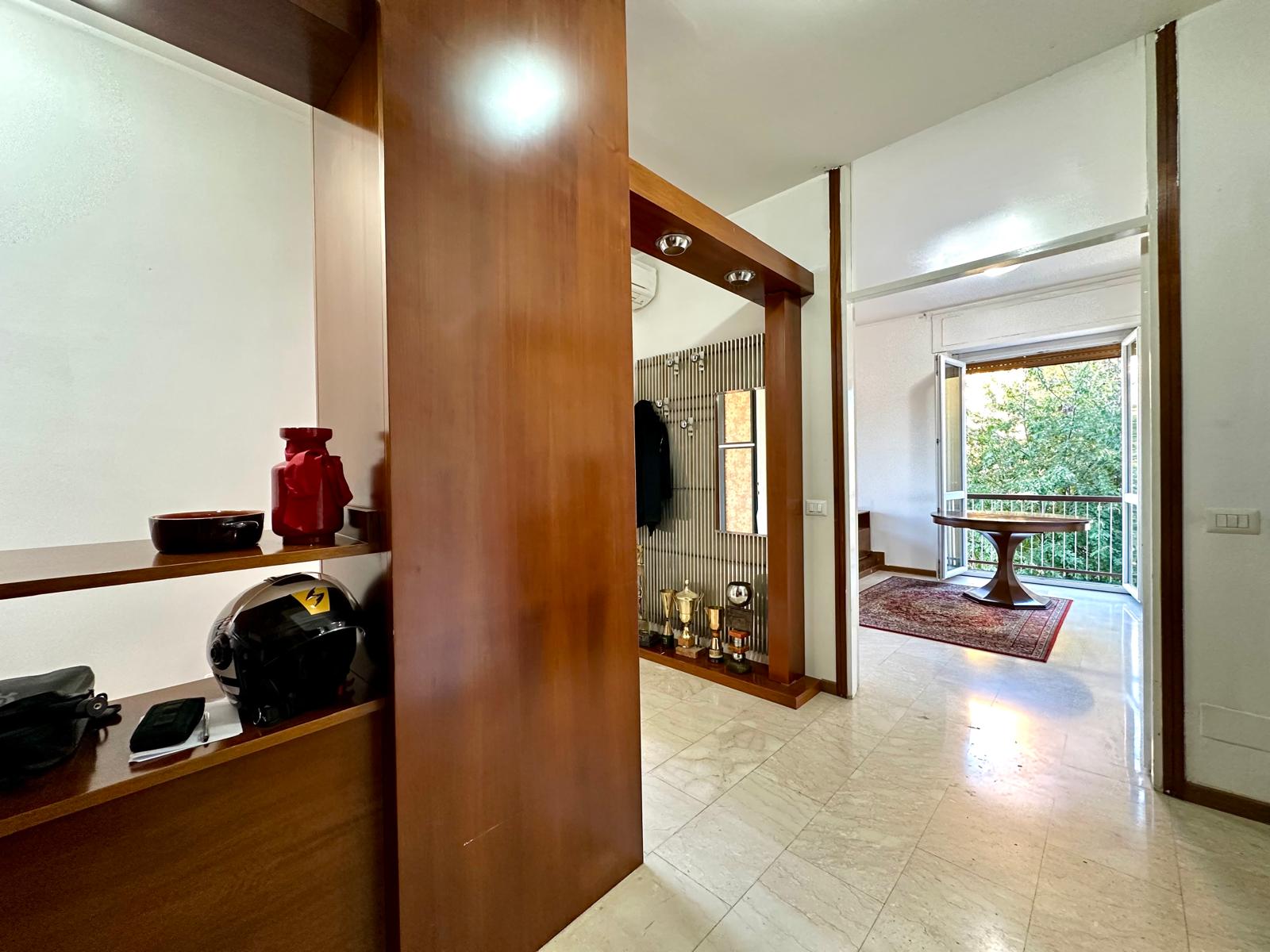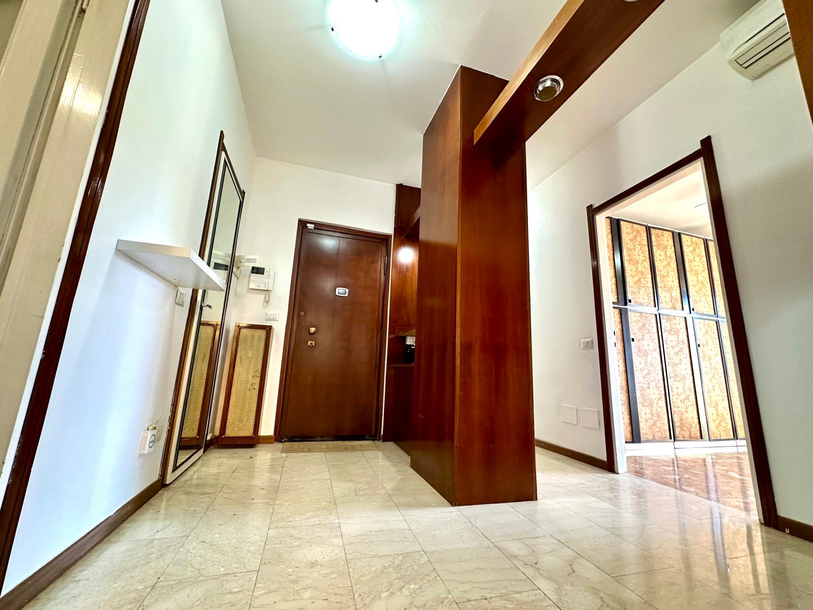 La soluzione, che offre un ottimo affaccio panoramico, ha una doppia esposizione angolare su Vai Padova e su un a Via privata. La porta d’ingresso è blindata, gli infissi esterni sono nuovi, in alluminio e a taglio termico, quelli interni originali in legno. I pavimenti sono in marmo ovunque ad eccezione della zona servizi dove è presente la ceramica. Gli impianti sono a norma e certificati. Impianto di aria condizionata con split Daikin presente all’ingresso. Riscaldamento centralizzato a consumo.