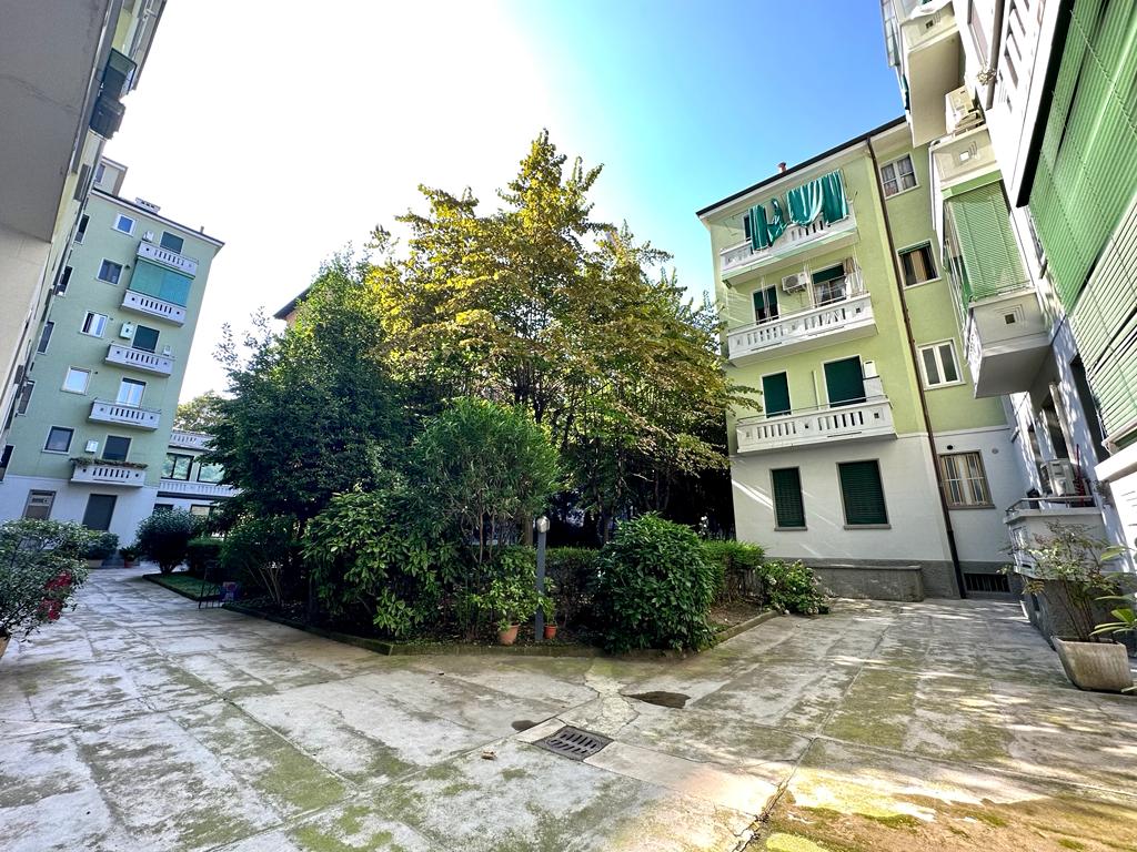 Bilocale a Milano in Piazza Fusina n.2 a pochi passi dalla fermata MM4 “Argonne”, in contesto d’epoca degli anni ’30 con gradevole cortile piantumato, parcheggio biciclette e servizio di portineria, proponiamo appartamento di circa 55 mq al secondo piano con ascensore NUOVO in fase di installazione composto come segue: ingresso, soggiorno con cucina a vista, camera, bagno con doccia, ripostiglio in quota, 2 balconi e solaio di pertinenza. L’appartamento gode di un’esposizione interna a nord su cortile piantumato che lo rende silenzioso. L’immobile presenta pavimenti in gres ovunque, ceramica in bagno. Infissi esterni nuovi in legno con doppi vetri. Zanzariere. Impianto di aria condizionata in soggiorno ed in camera. Porta blindata. Gli impianti elettrico ed idraulico sono a norma. Impianto del gasi non presente e piano cottura ad induzione elettrica in classe A. Scaldabagno elettrico. Il riscaldamento è centralizzato a consumo. La vicinanza all’Università, all’Istituto dei Tumori di Venezian ed alla fermata della MM4 “Argonne”, rendono l’appartamento ideale per single, coppie o investitori che cercano un immobile da mettere a reddito. Libero subito.