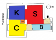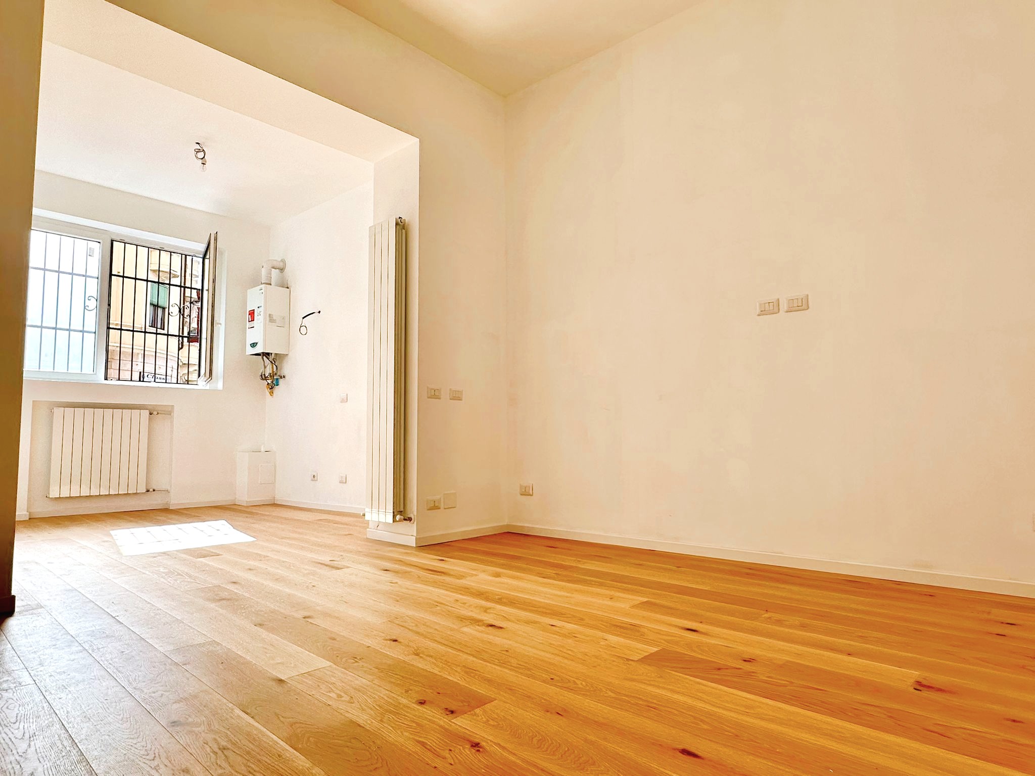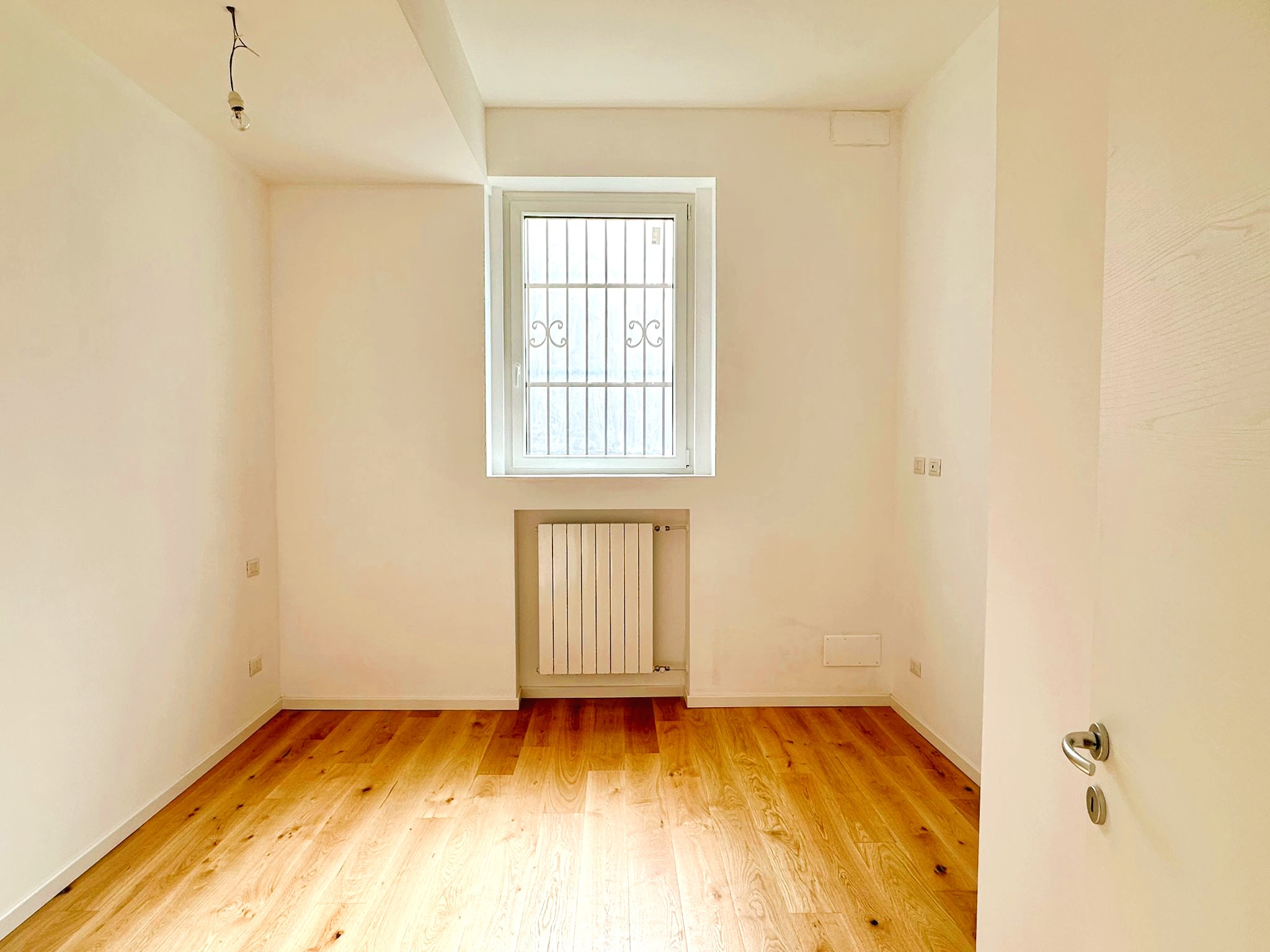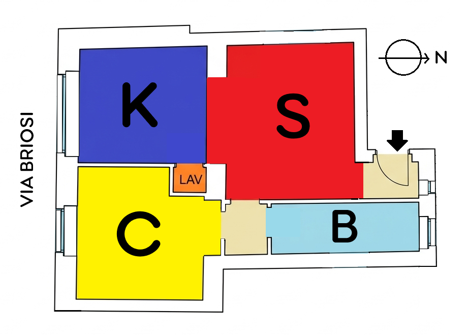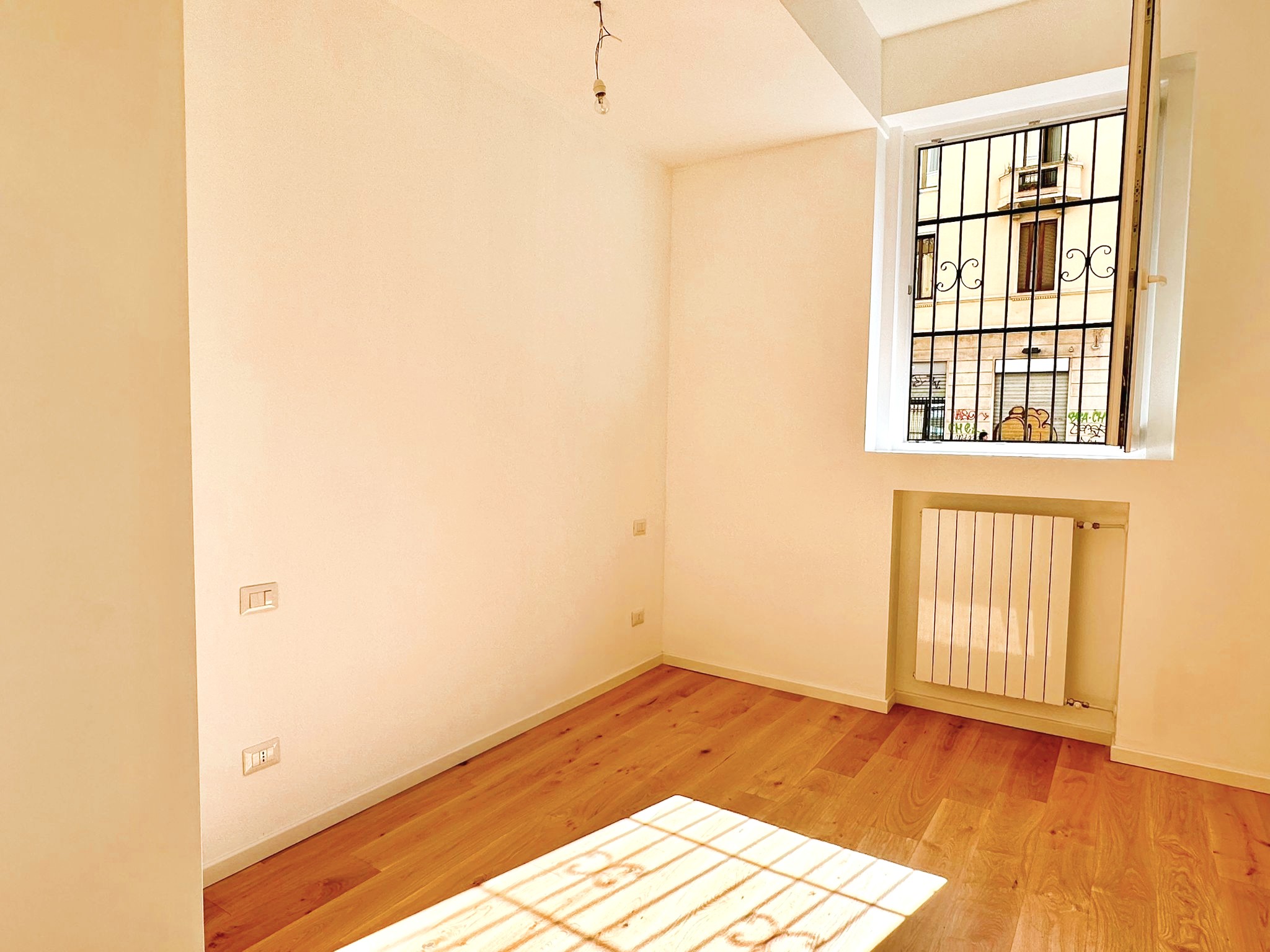 L’affaccio della camera e del soggiorno ha una luminosissima esposizione a Sud, verso la tranquilla Via Briosi, non rumorosa né trafficata.
