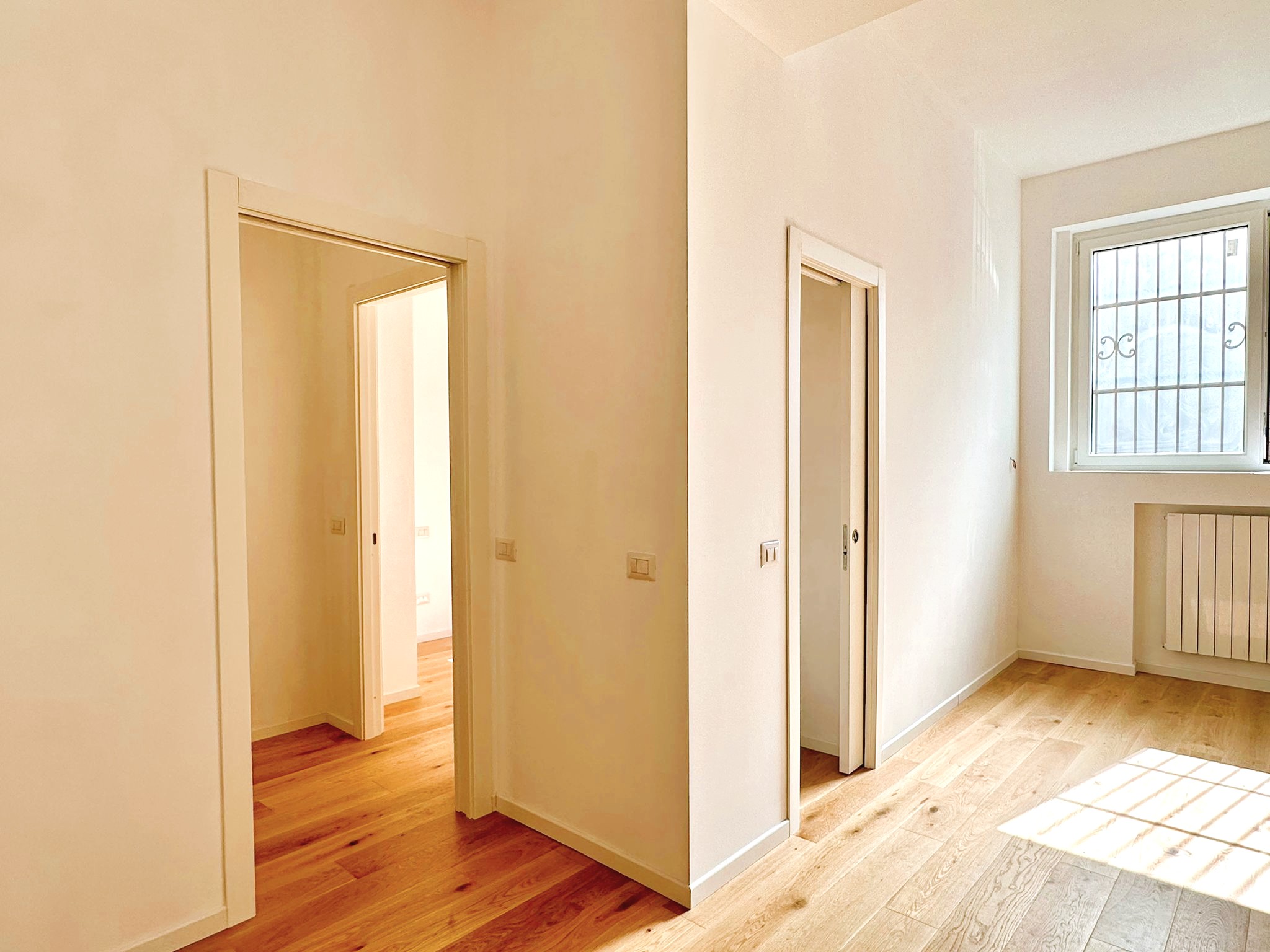 Nessun dettaglio è stato lasciato al caso. Pavimentazione uniforme in parquet di ulivo chiaro posato a listoni. Aria condizionata in tutti gli ambienti. Infissi di ultima generazione a taglio termico (massimo isolamento acustico e termico) e porta blindata.