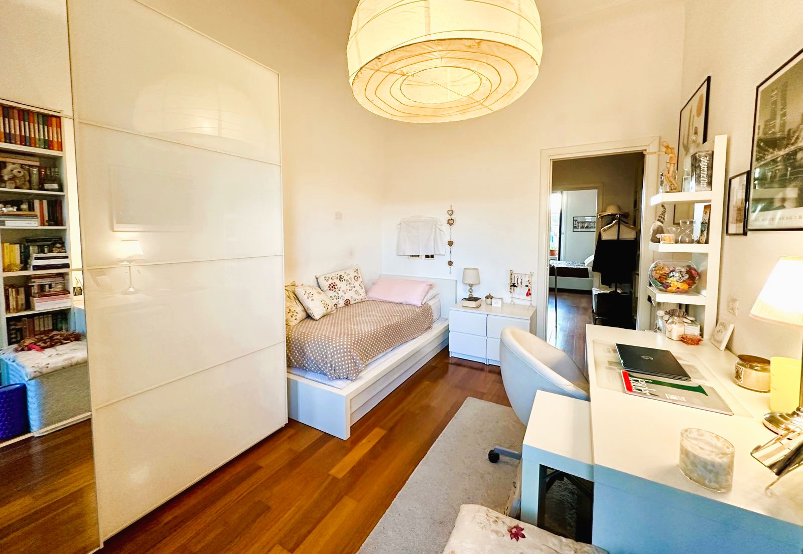 Il piano alto, la doppia esposizione ad Est ed Ovest verso il cortile interno e verso Via Canaletto, rendono l’immobile luminoso e silenzioso tutto il giorno. La presenza di due camere, dei doppi servizi e di 4 balconi, lo stabile d’epoca, la disposizione su due livelli, sono caratteristiche ideali per coppie e famiglie alla ricerca di un appartamento definitivo in Città Studi.
